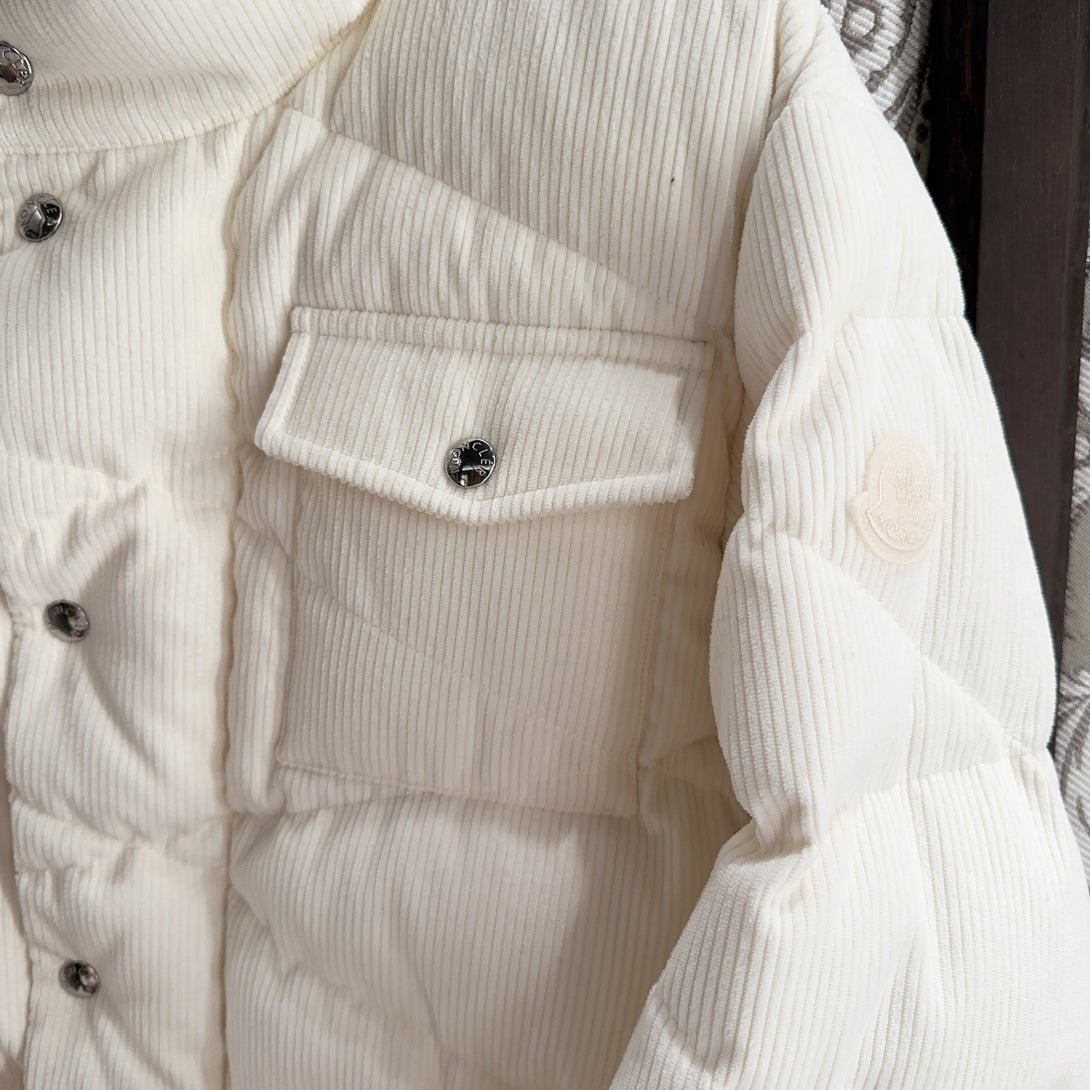 Shell: 100% cotton; Lining: 100% nylon; Collar: 100% cotton; Filling: 90% down, 10% feathers