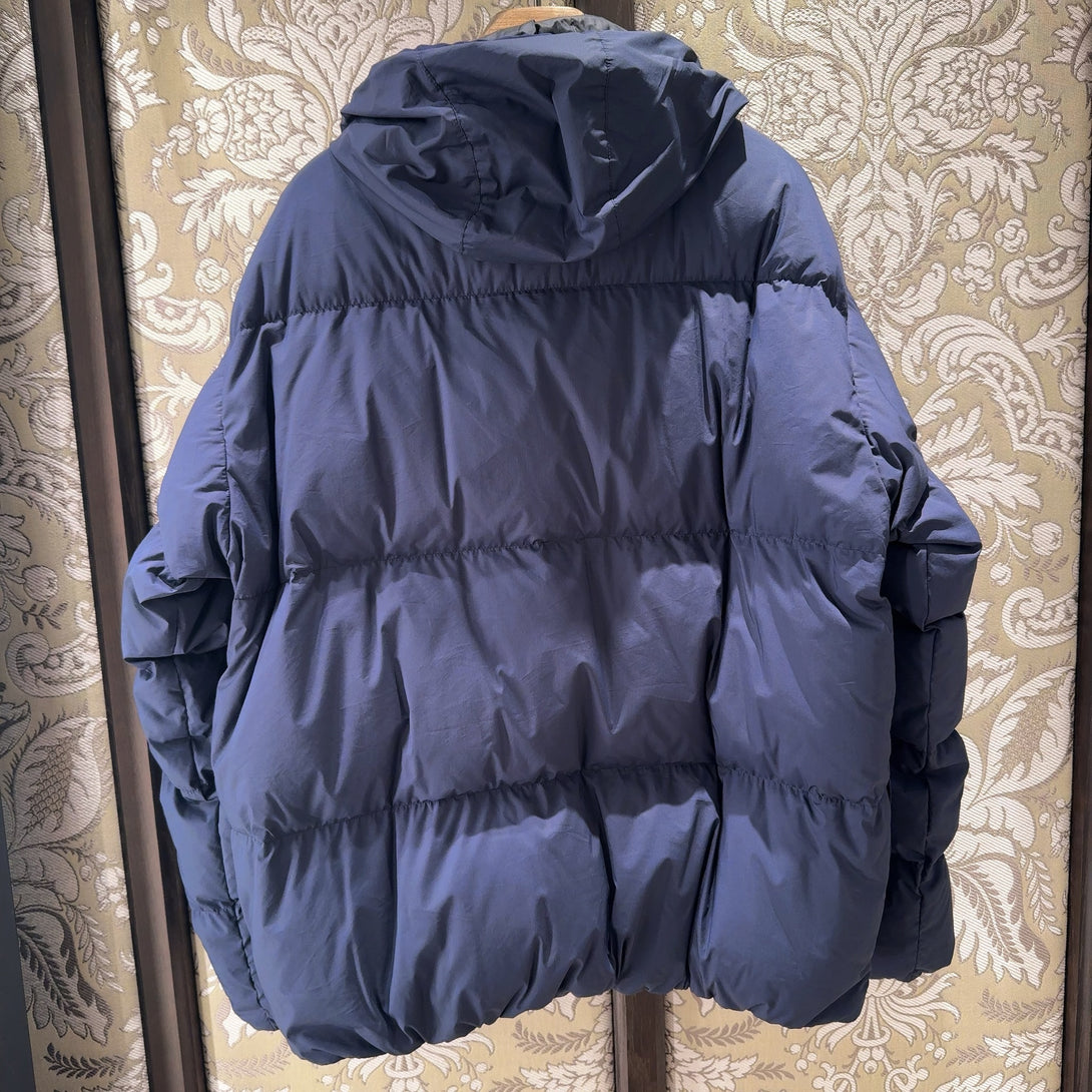 Innovative shape and light fabrics characterize the Tangelo down jacket from the Moncler x Gilga Farm by Donald Glover collection for men.