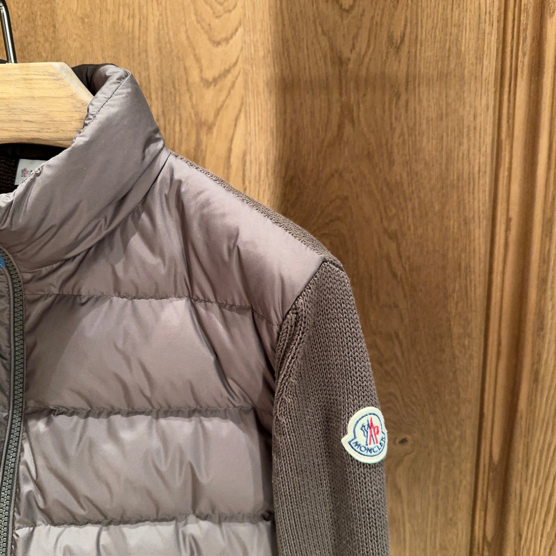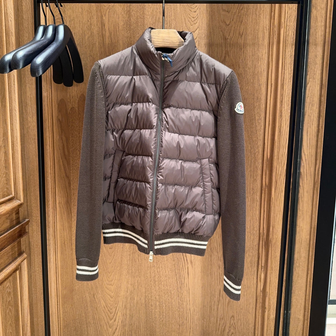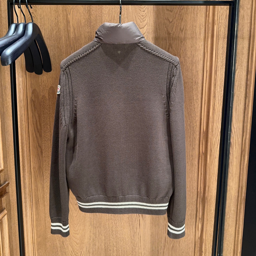 Doubling as outerwear when the weather permits, this cotton cardigan for men is enhanced with a down-filled front.