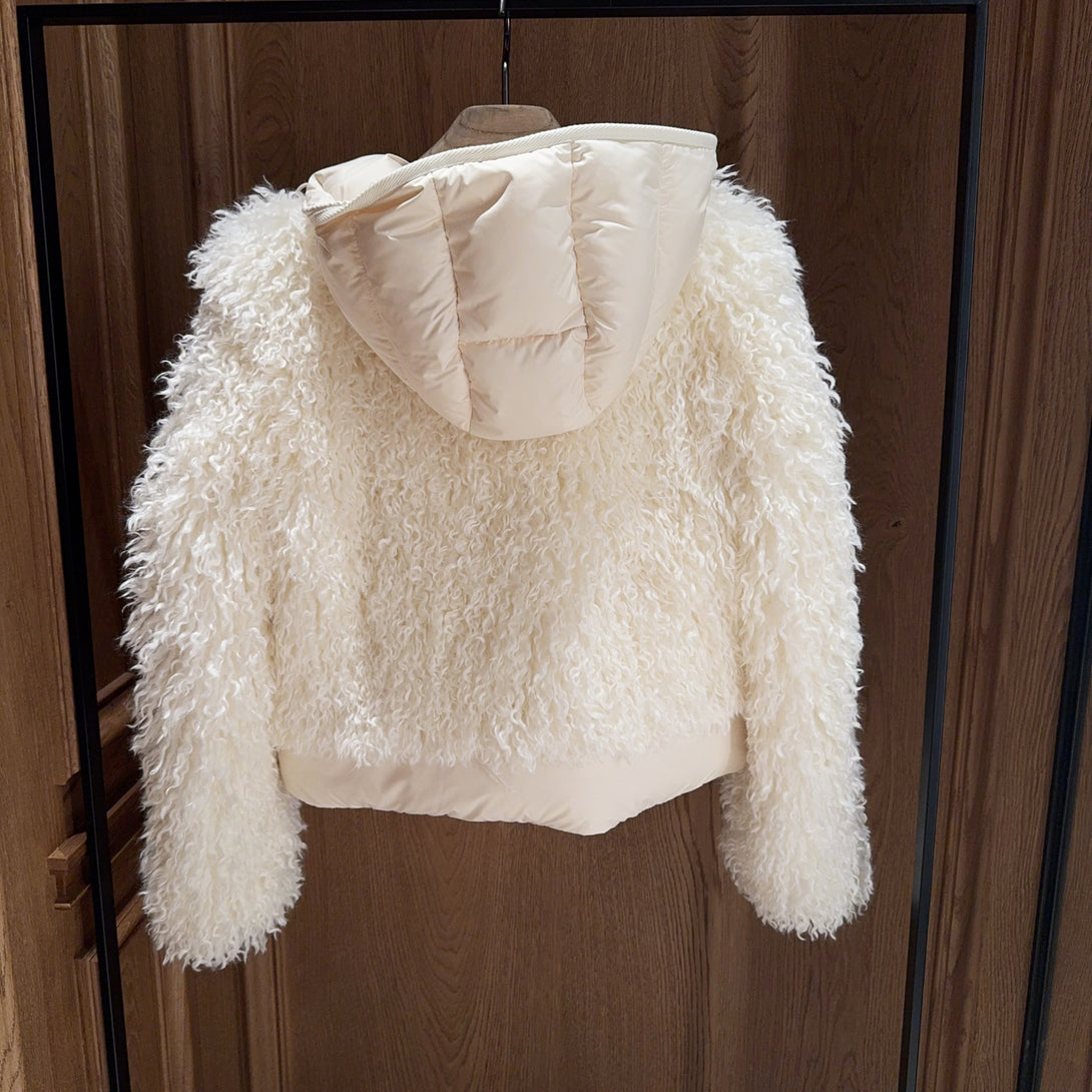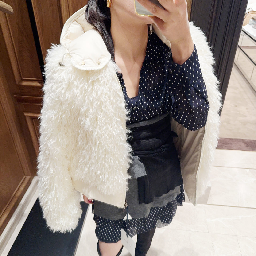 An interplay of contrasting textures infuses the Vigiers short down jacket from the women's collection with a contemporary aesthetic.