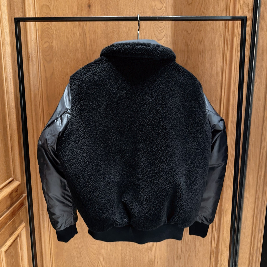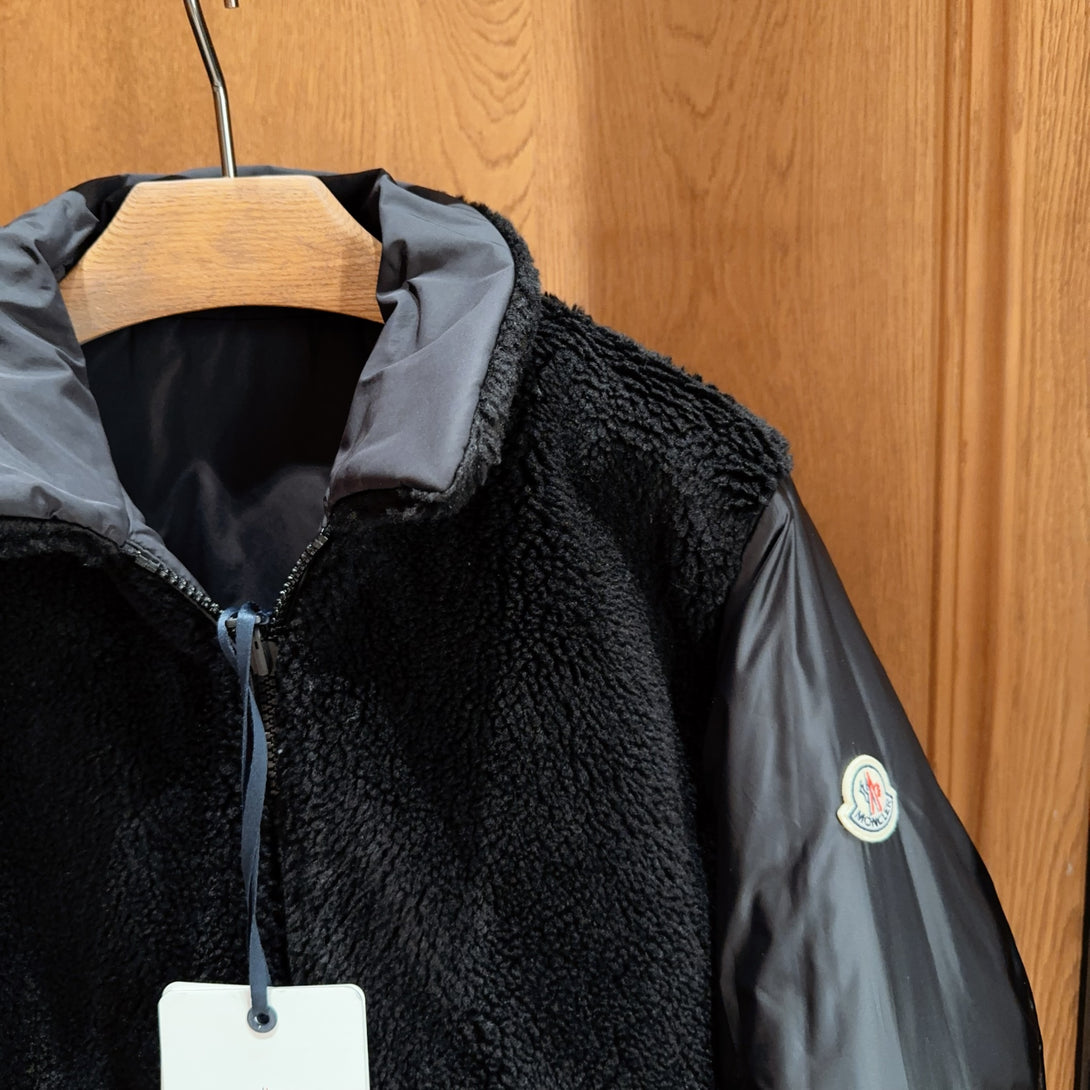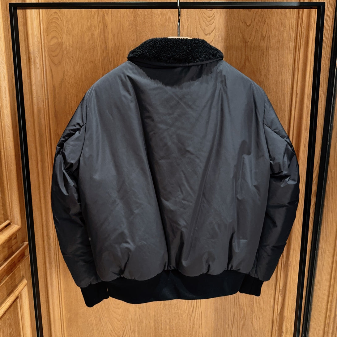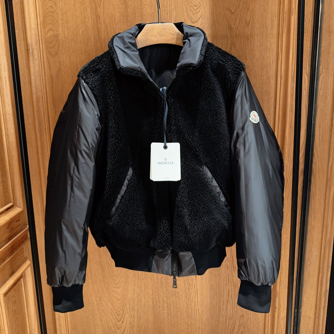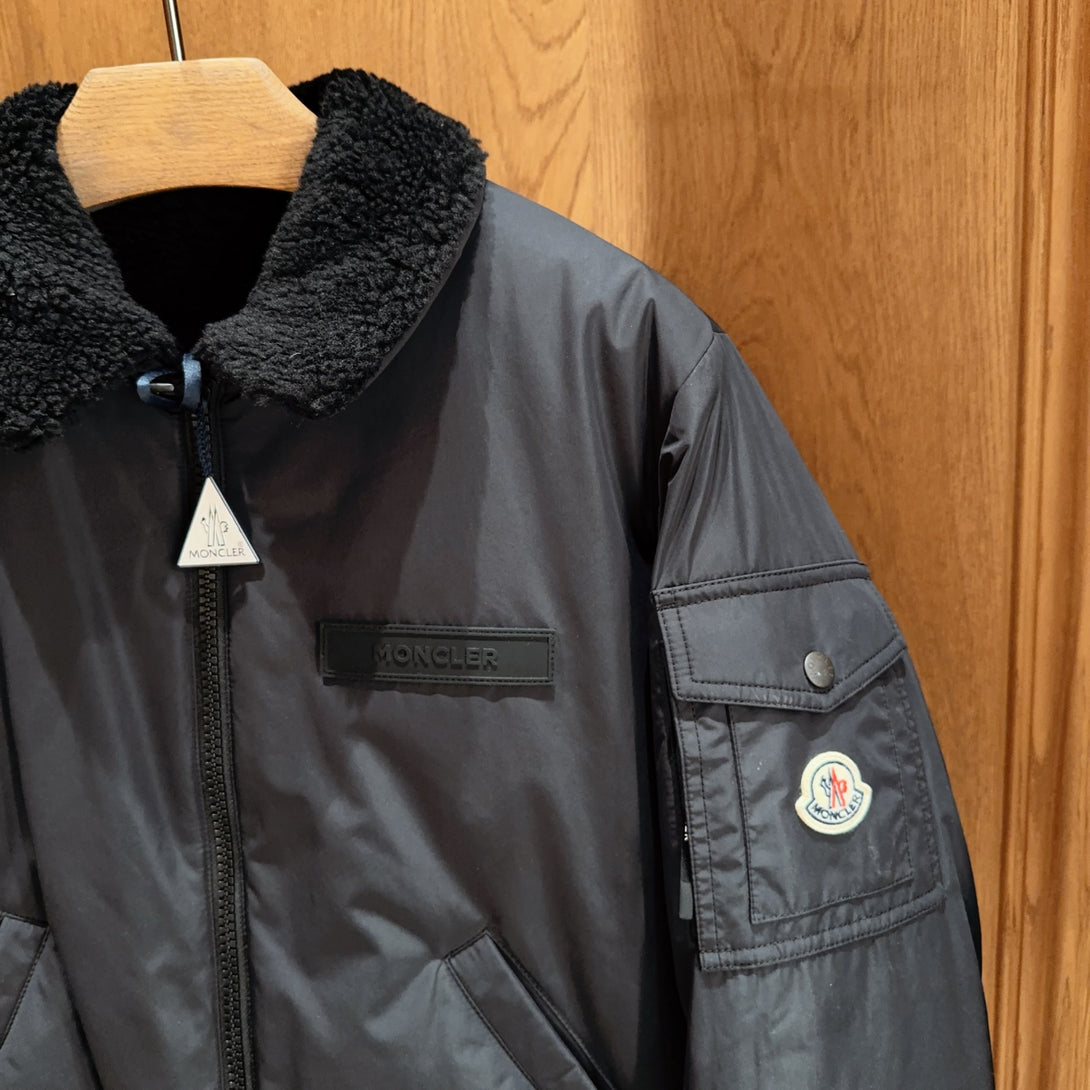 Playing with different textures, the men's Maulevrier short down jacket features plush teddy on one side and matte technical fabric on the other.