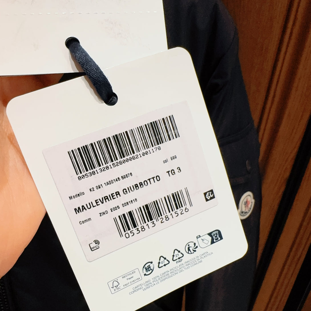 EXTERIOR: 100% Polyester; Ribs: 89% Virgin wool, 10% Polyamide / Nylon, 1% Elastane / Spandex; BODY LINING: 77% Polyester, 23% Wool; SLEEVES LINING: 100% Polyamide / Nylon; PADDING: 90% Down, 10% Feather; DETAILS PADDING: 100% Polyester