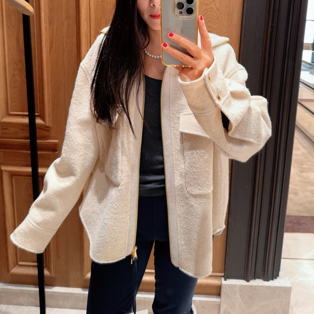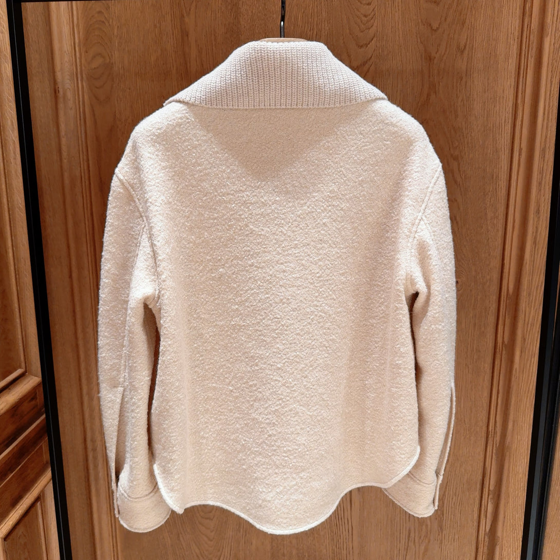 Synonymous with contemporary elegance, this wool blend shirt for women is characterised by a soft, tactile finish.
