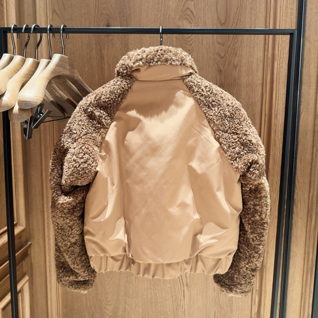 Characterised by supremely soft textures, the Coligny short down jacket for women is crafted from teddy fleece.
