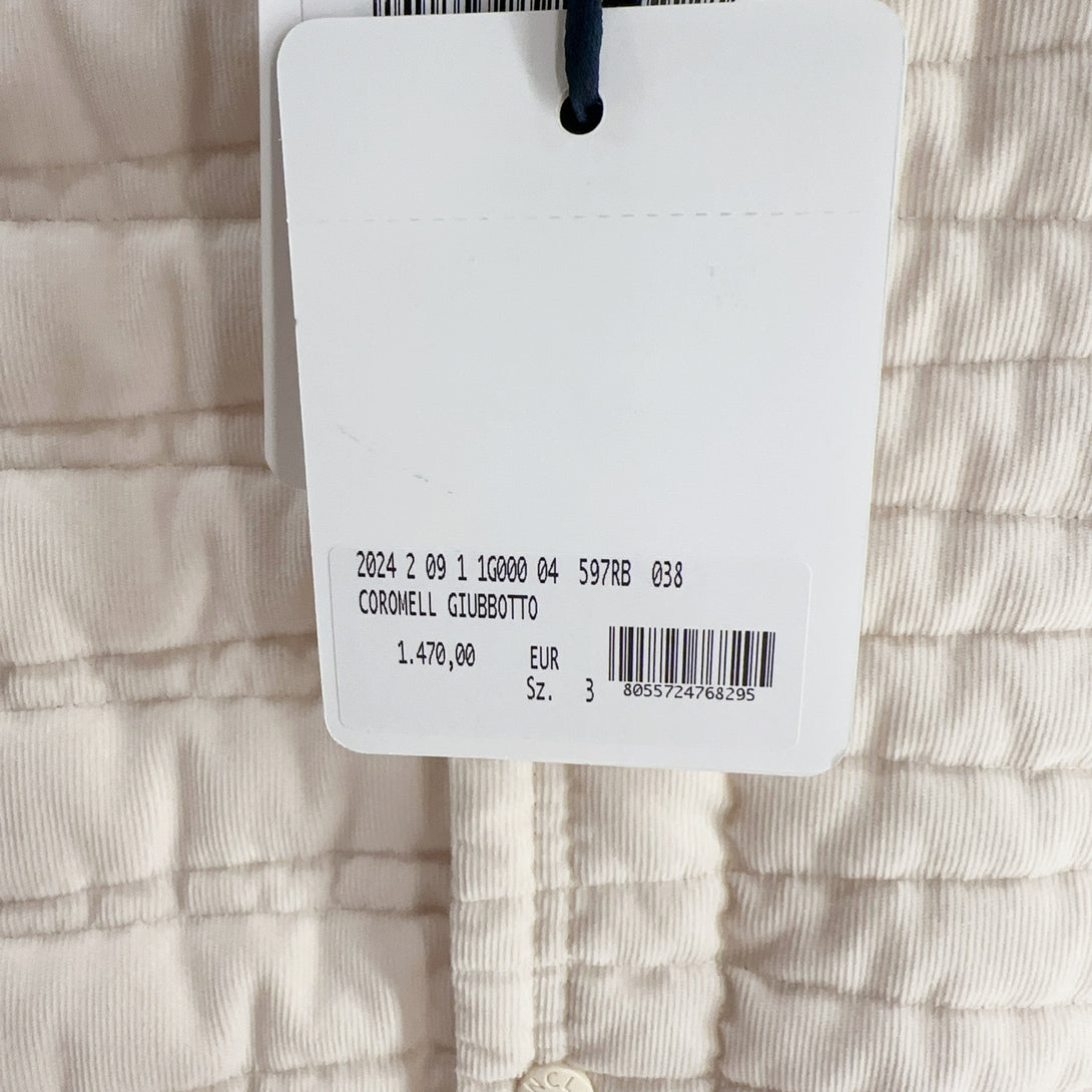 An innovative quilting pattern adds a graphic touch to the Coromell shacket. Crafted from textured corduroy, the down-filled overshirt pairs a geometric pattern with a collar and straight cut.