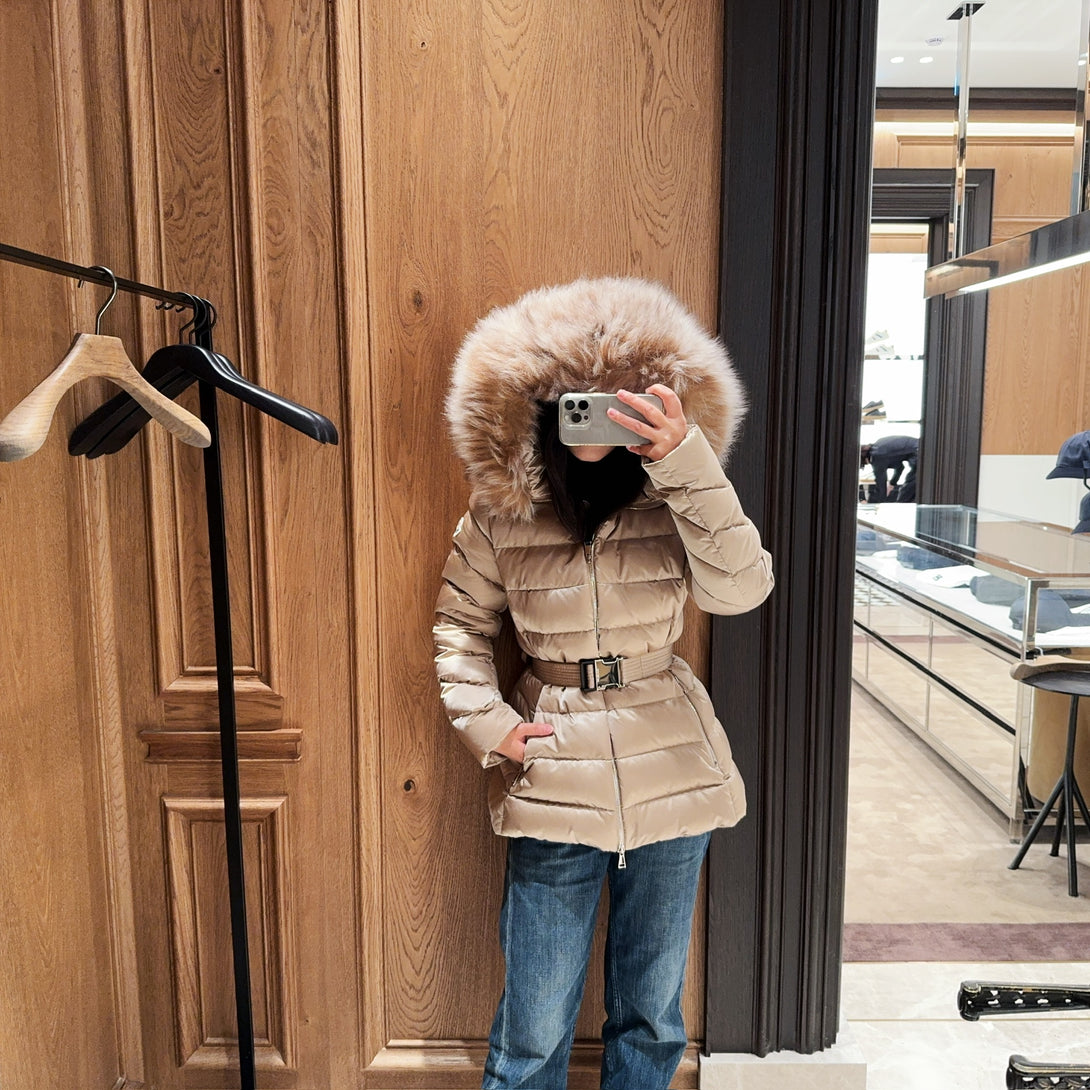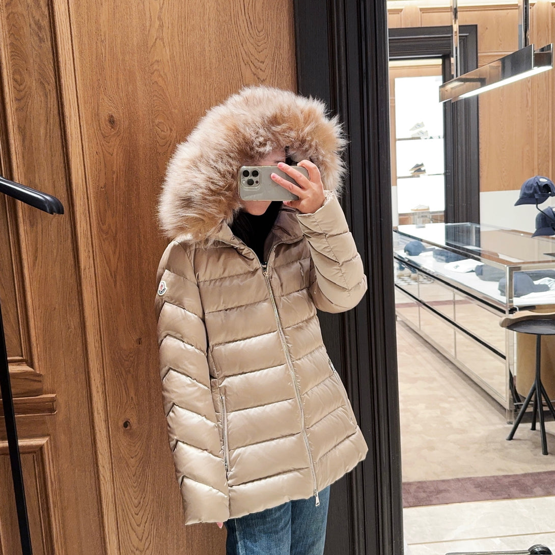 EXTERIOR: 100% Polyamide / Nylon; LINING: 100% Polyamide / Nylon; HOOD LINING: 100% Polyamide / Nylon; PADDING: 90% Down, 10% Feather;Leather with hair 1: SHEEP; Origin: China; Dyed