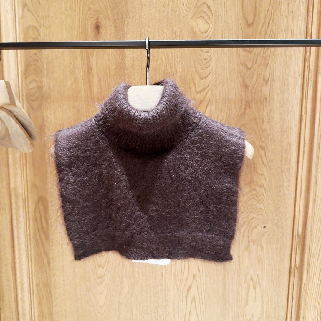 A contemporary design, this neck warmer for women is knit from a soft mohair and wool blend.