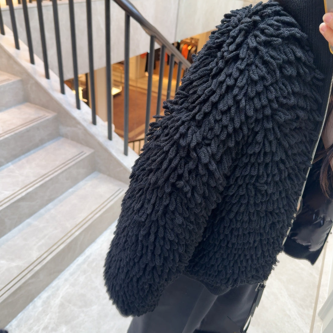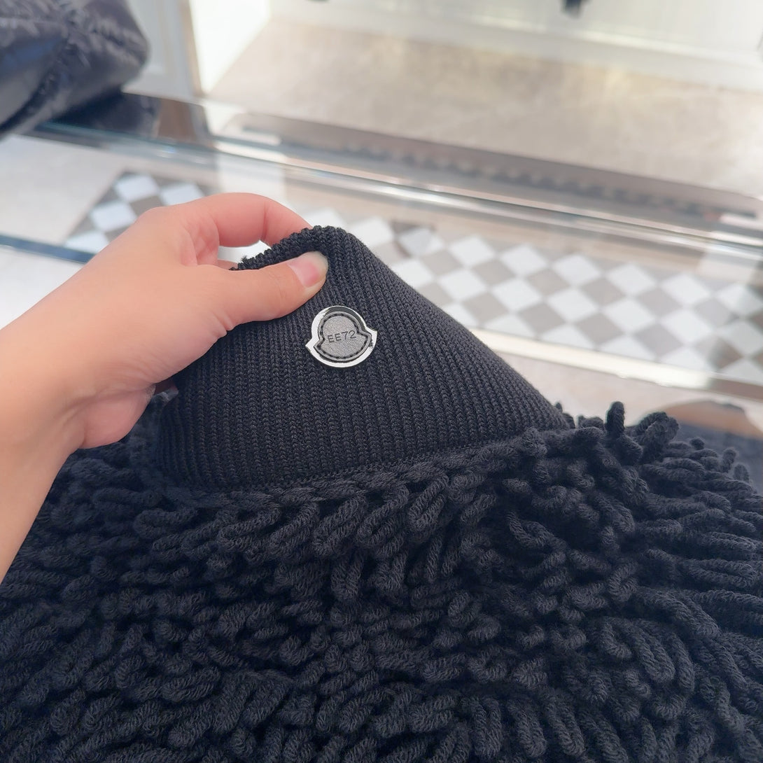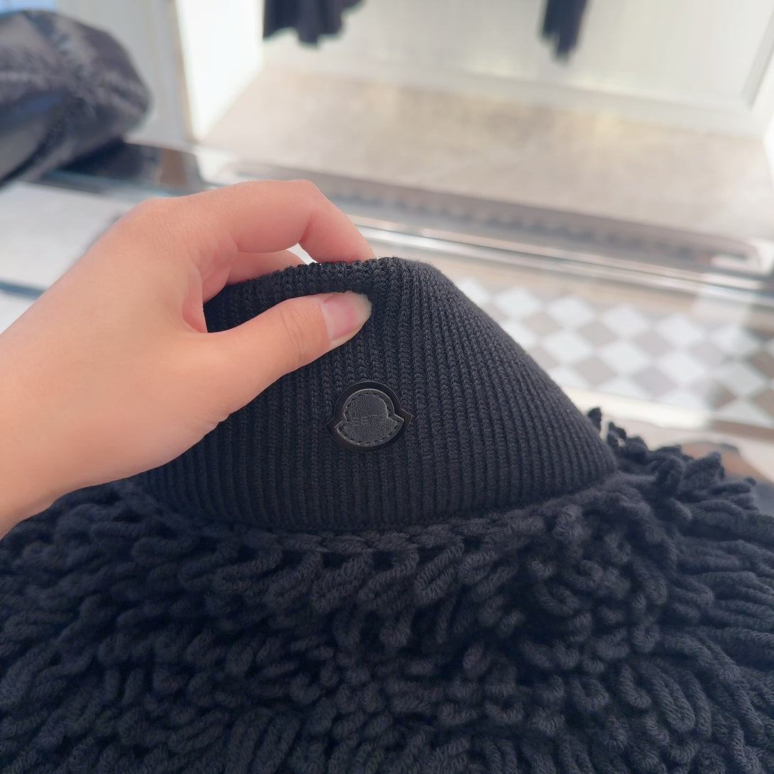 A striking three-dimensional texture characterizes this Moncler x EE72 by Edward Enninful wool blend cardigan.