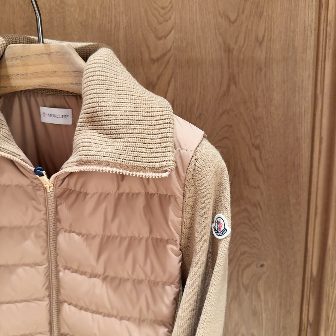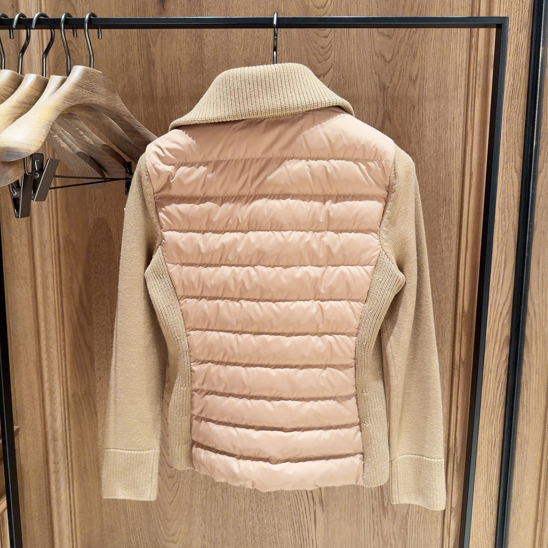 Effortlessly worn in any season, this wool cardigan for women is enhanced with a down-filled front and back.