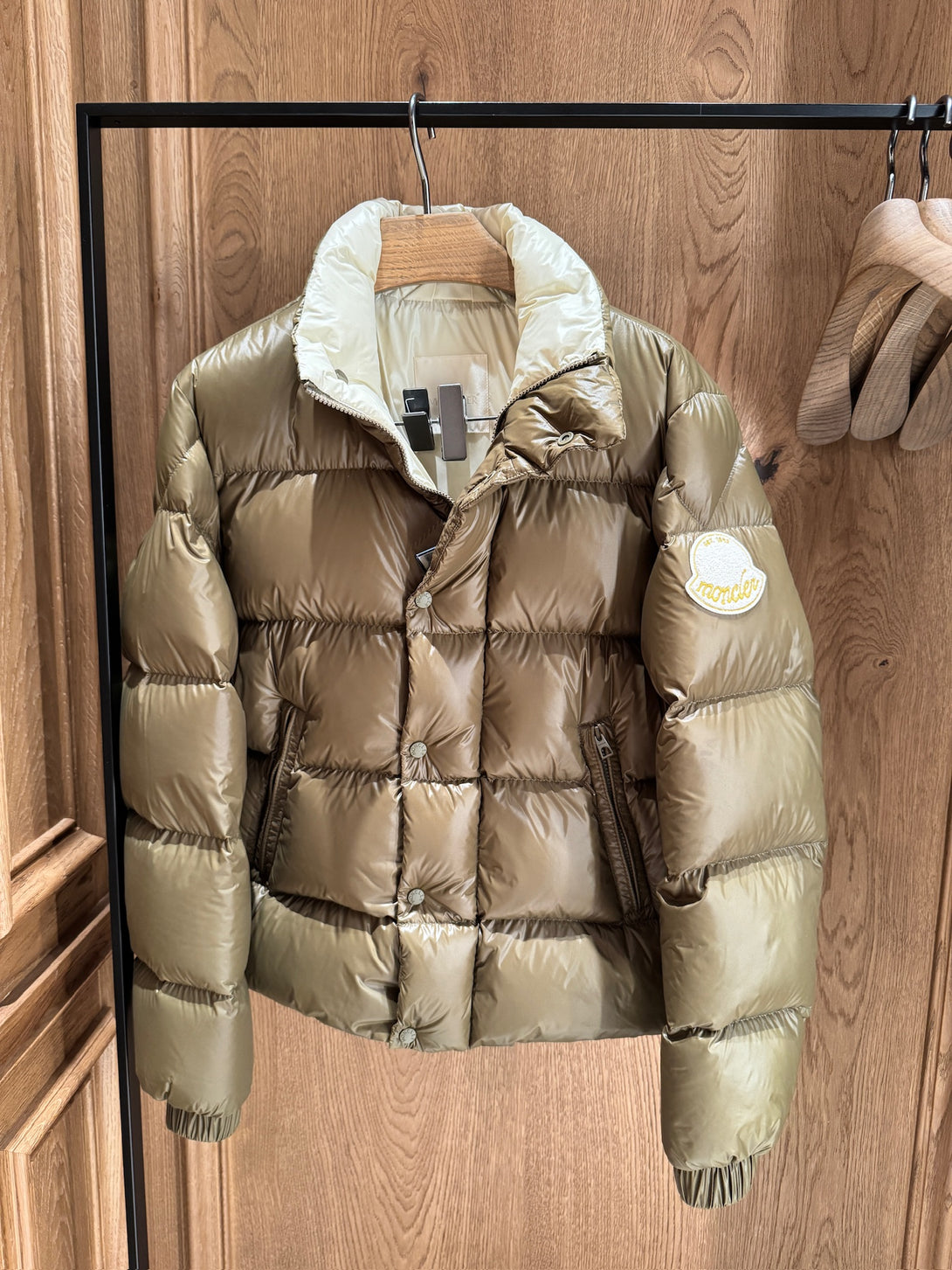 Crisp fabrics with a bold glossy texture characterize the Tripiti short down jacket for men.