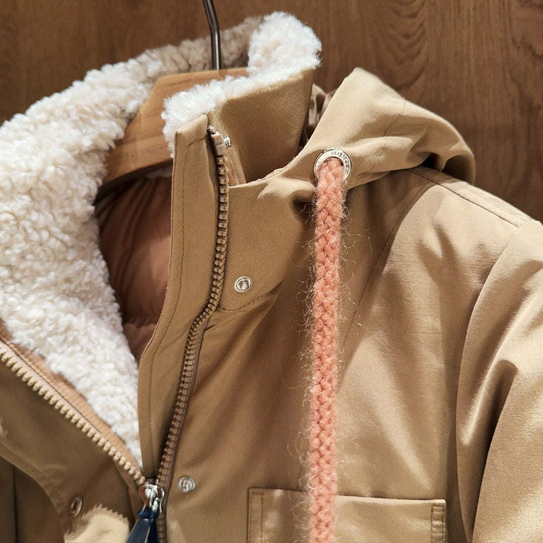 A cocooning design, the Urfe parka is crafted from a water-repellent fabric with a cotton feel, while teddy lining grants extra softness. The parka coat is featured in a loose fit, while an adjustable hood with a precious mohair drawstring grants added protection. Spacious pockets nod to utility, making the long puffer a practical everyday piece.