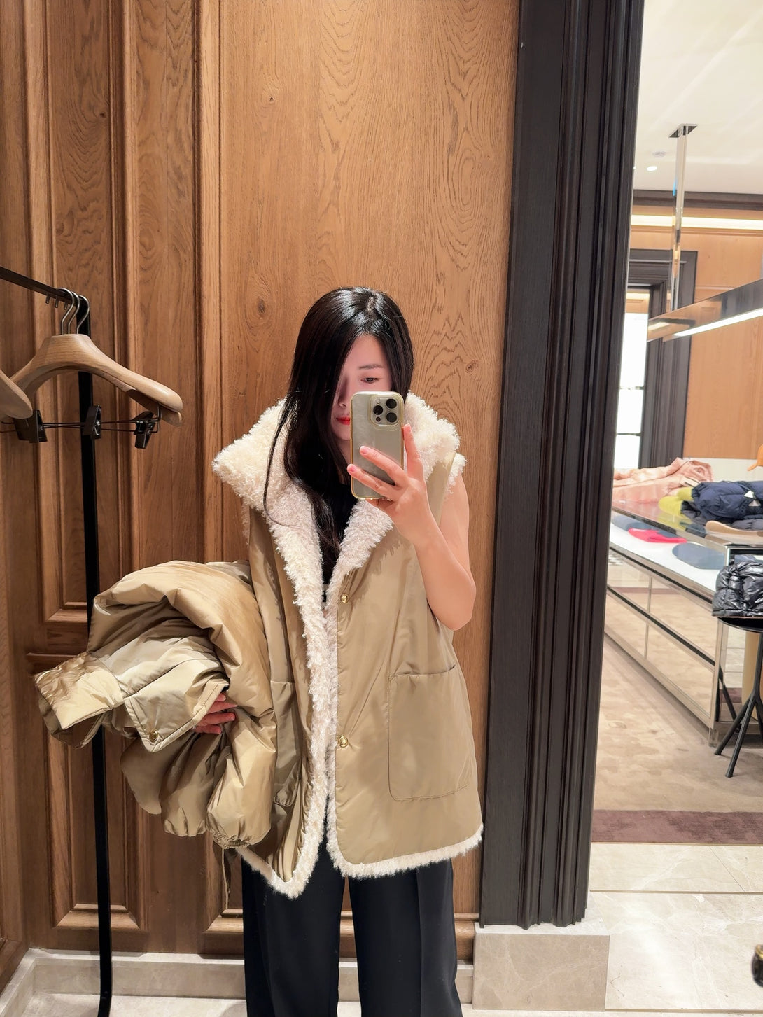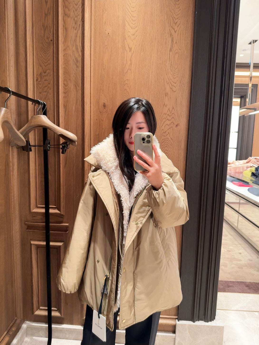 PART A: EXTERIOR: 100% Polyamide / Nylon; LINING: 100% Polyamide / Nylon; PADDING: 90% Down, 10% Feather; DETAILS PADDING: 100% Polyester;LEATHER TAG: CALF; PART B: EXTERIOR: 100% Polyamide / Nylon; LINING: 100% Polyester;LEATHER TAG: CALF