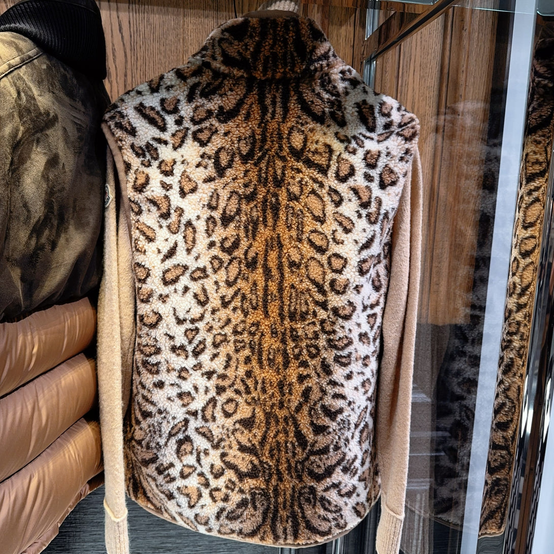 Inspired by the natural patterns found in nature, this zip-up teddy gilet for men is characterized by a striking animal print.