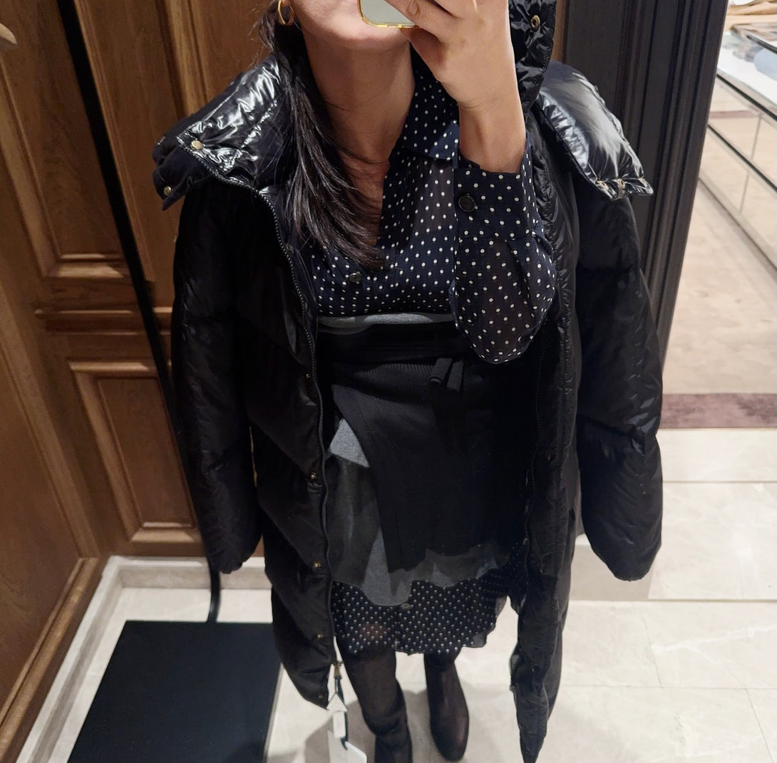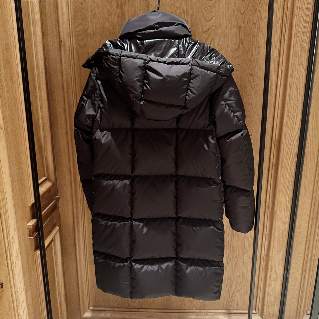 A sophisticated staple for when the temperature drops, the Litte long down jacket for women pairs geometric quilting with a satin finish.