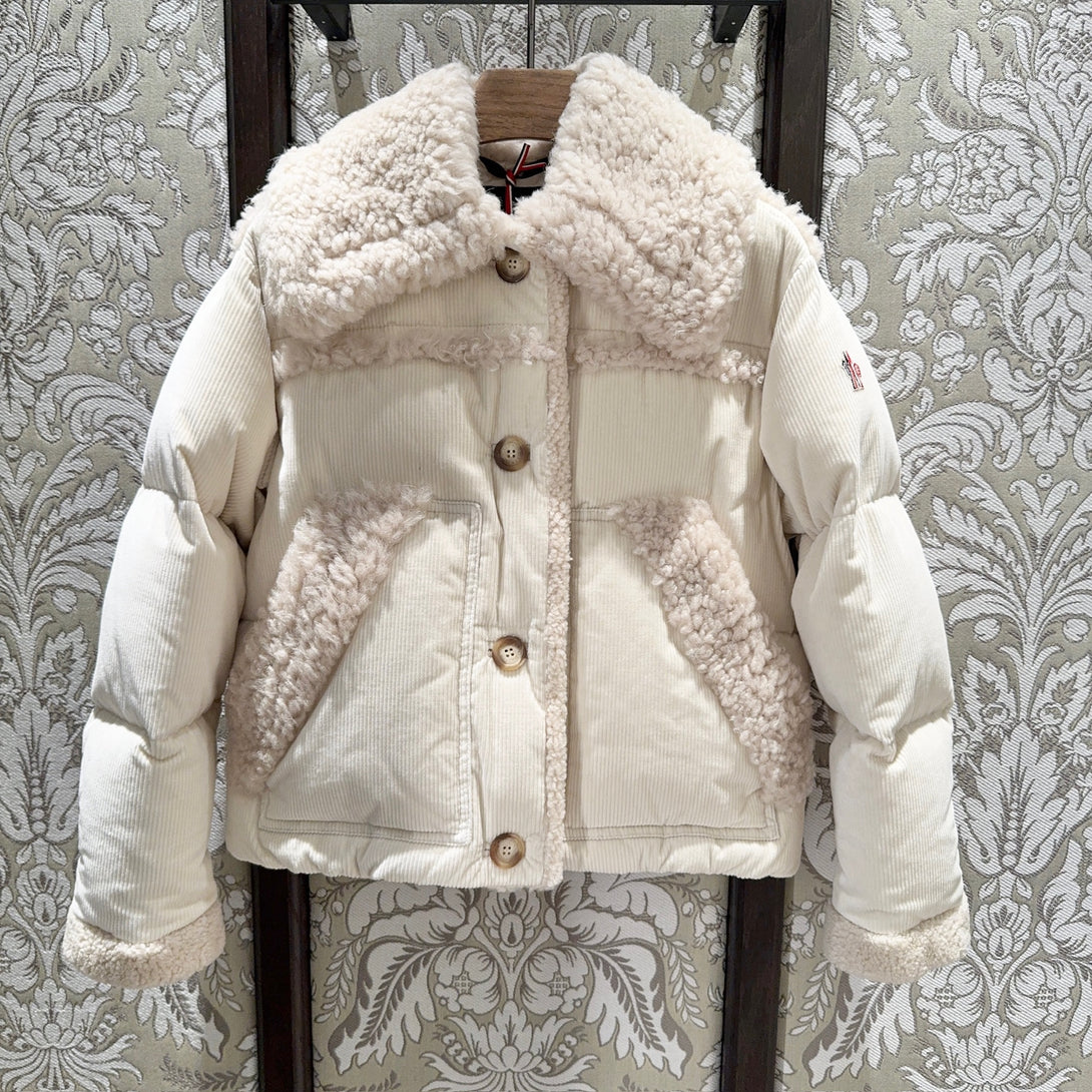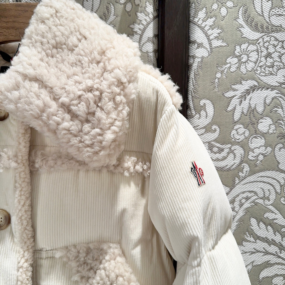 Product code J20981A00034M4663182Showcasing luxurious fabrics, the Moncler Grenoble Caleu short down jacket for women is presented in corduroy with shearling accents.