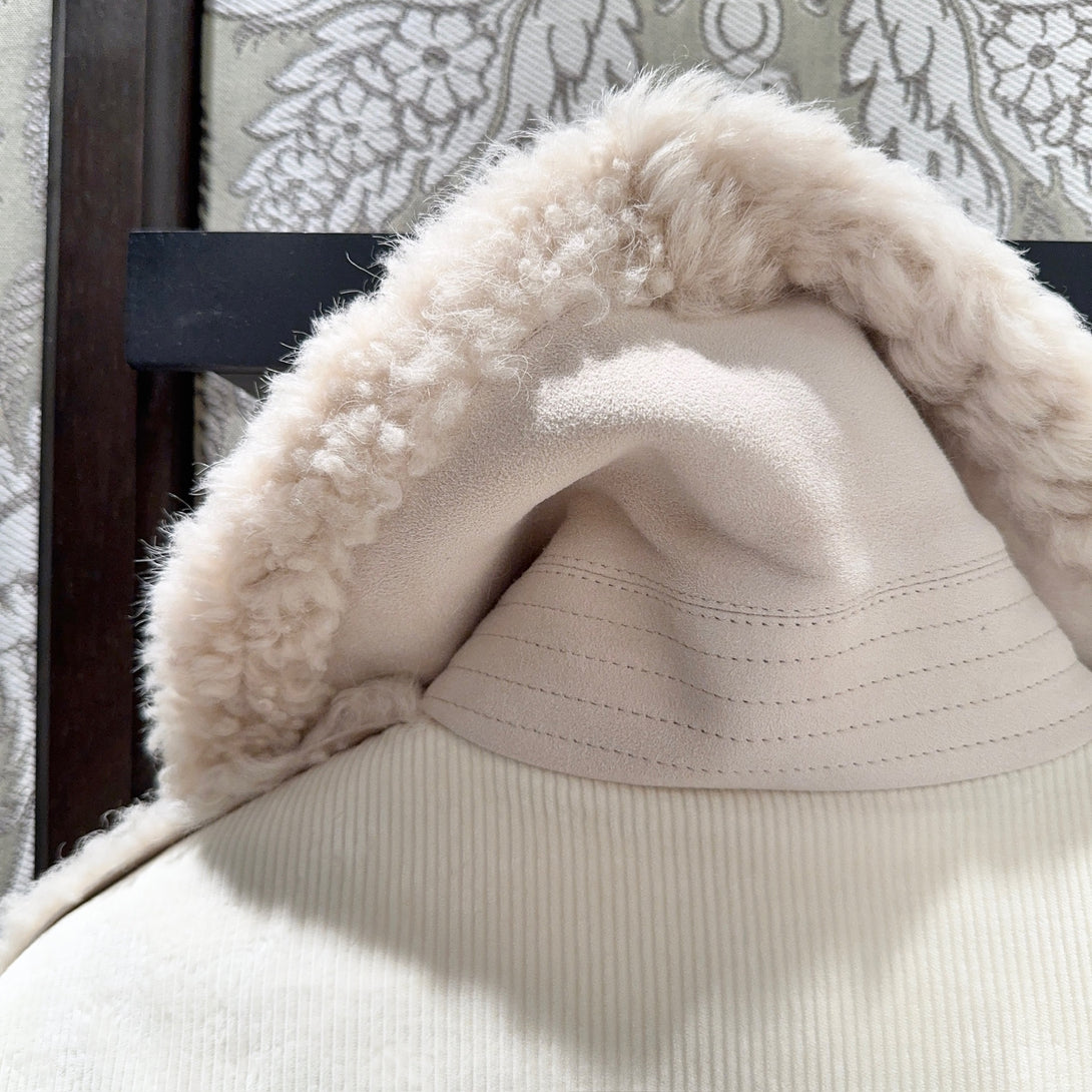 BASE FABRIC: 98% Cotton, 2% Elastane / Spandex; LINING: 100% Polyamide / Nylon; PADDING: 90% Down, 10% Feather; DETAILS PADDING: 100% Polyester; 1 MATERIAL: 83% Polyamide / Nylon, 17% Elastane / Spandex;Leather with hair 1: SHEEP; Leather with hair 2: SHEEP