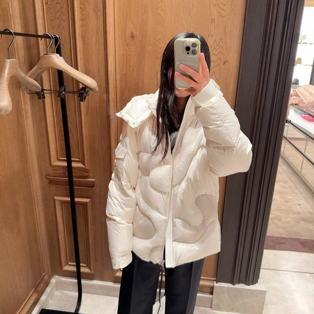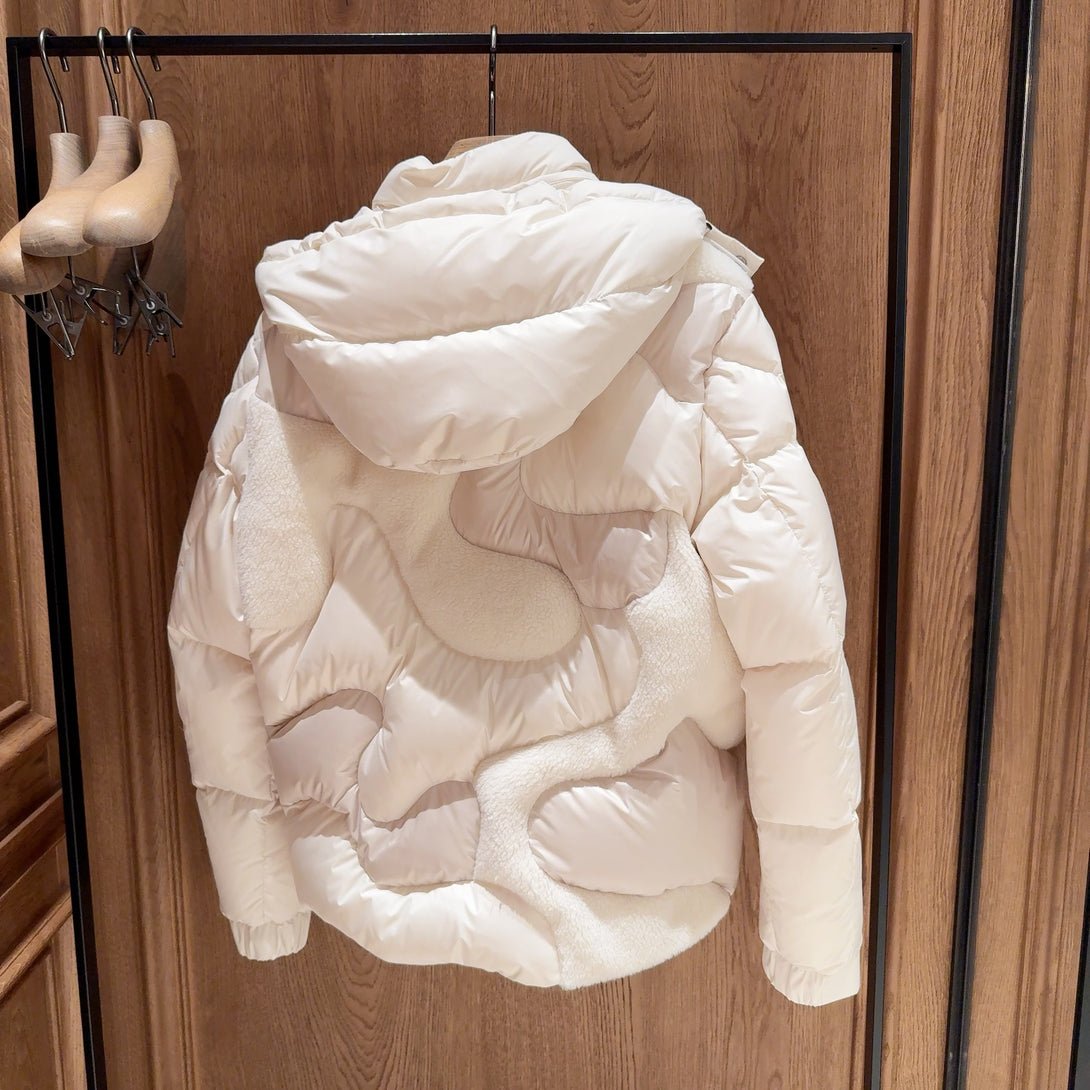 Candes Hooded Teddy Intarsia Short Down Jacket