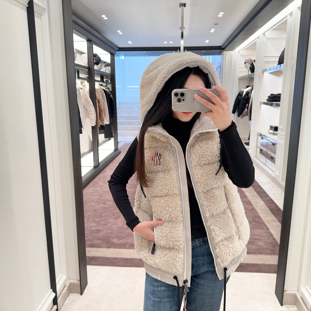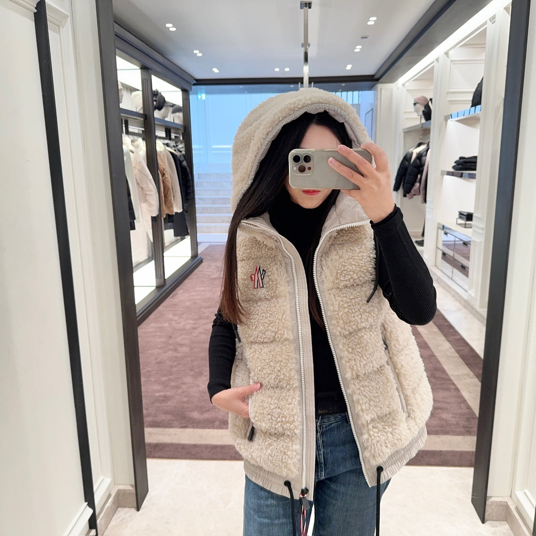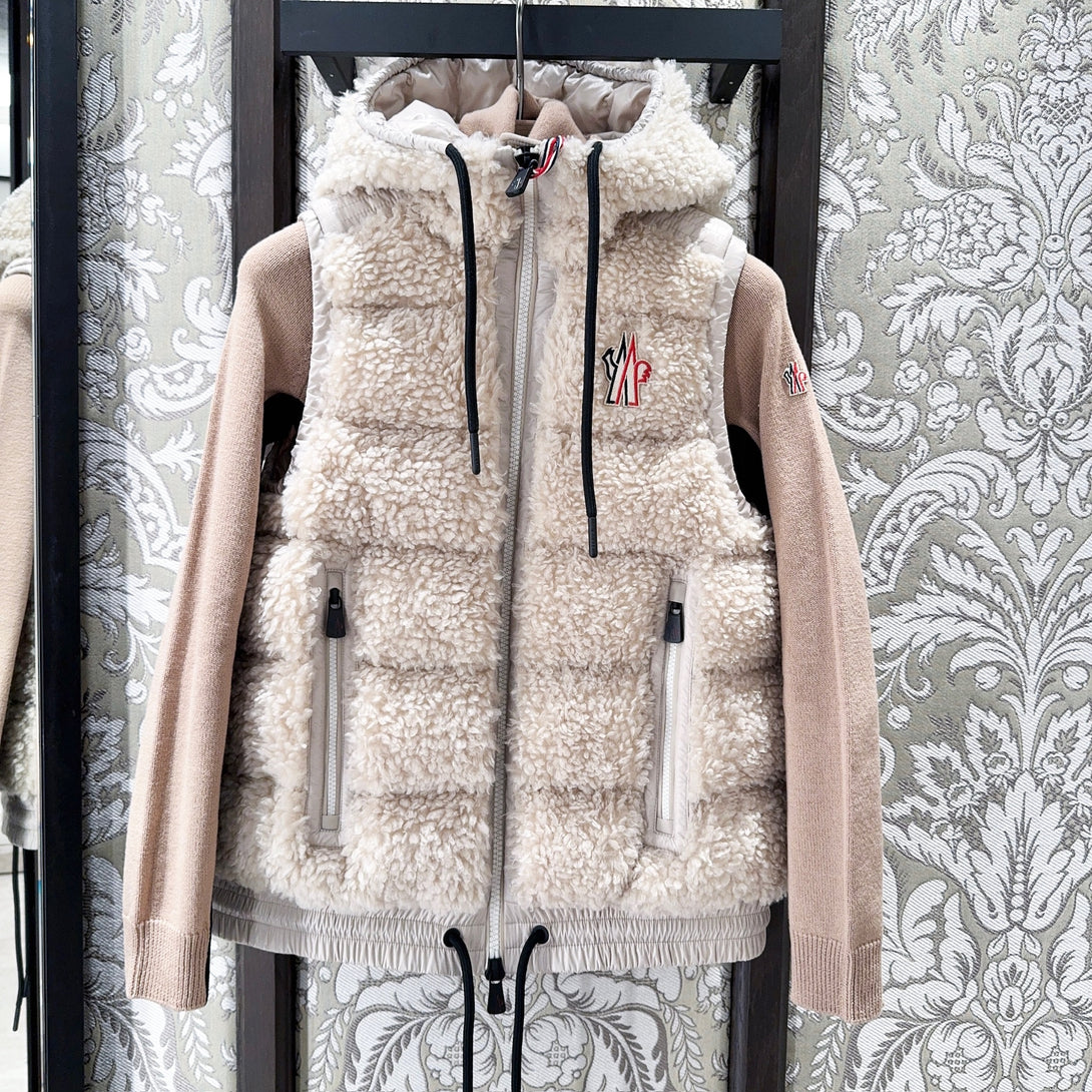 Encapsulating an après ski mood, this down vest from the women's Moncler Grenoble collection is crafted from teddy fleece.