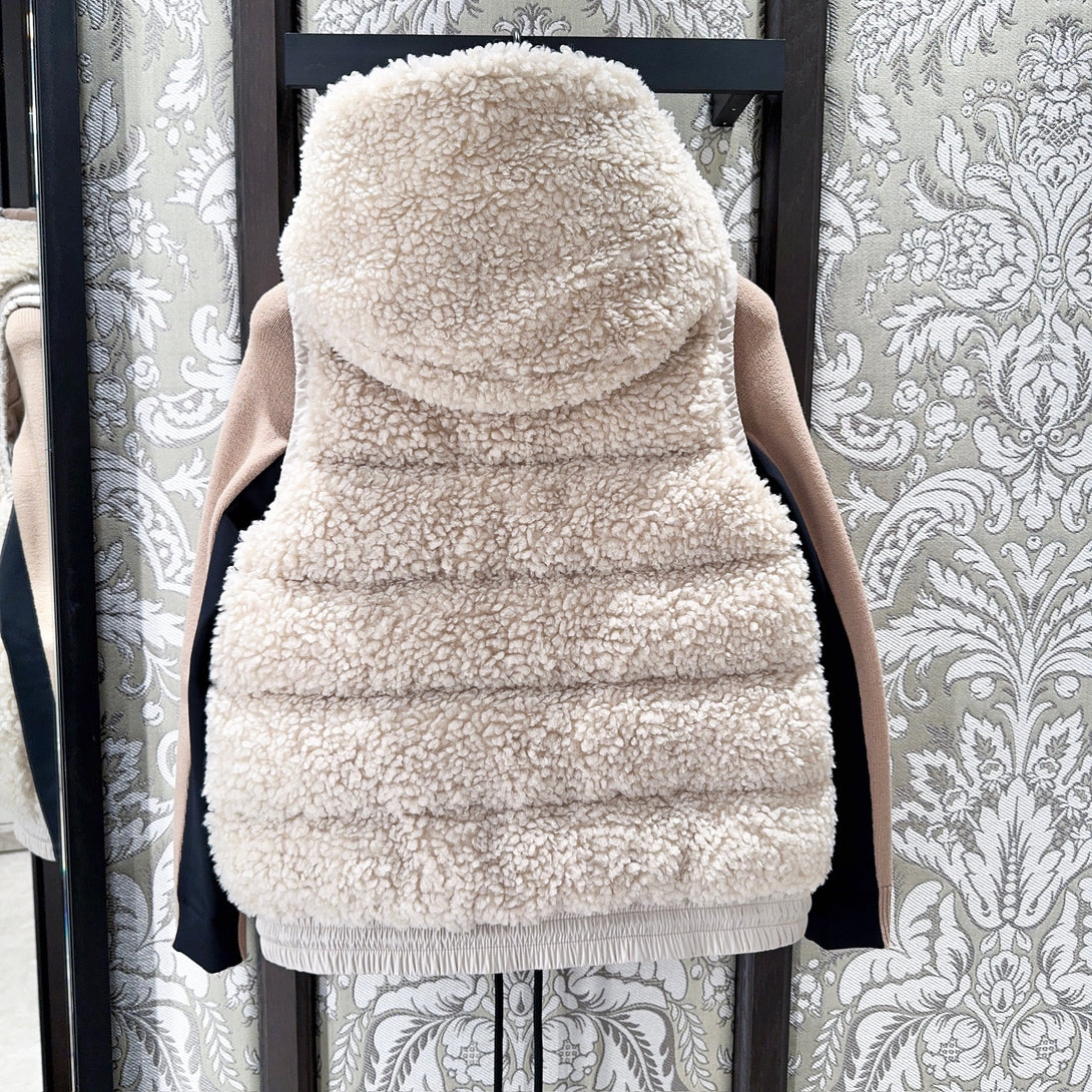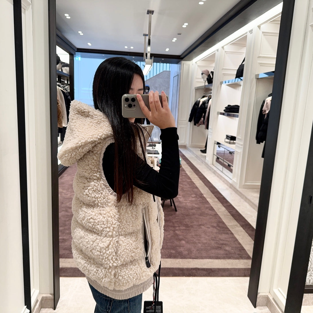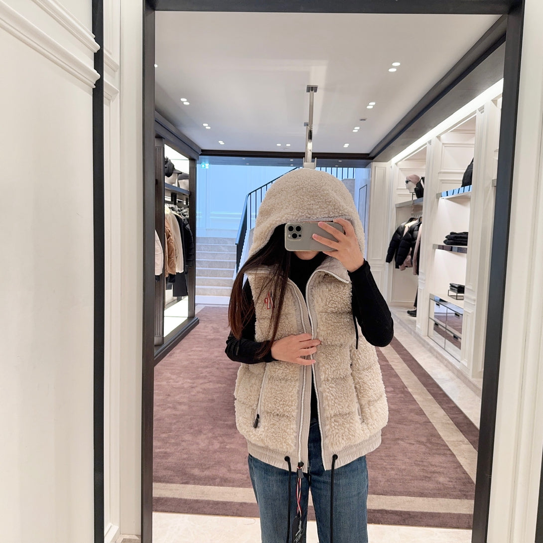 Encapsulating an après ski mood, this down vest from the women's Moncler Grenoble collection is crafted from teddy fleece.
