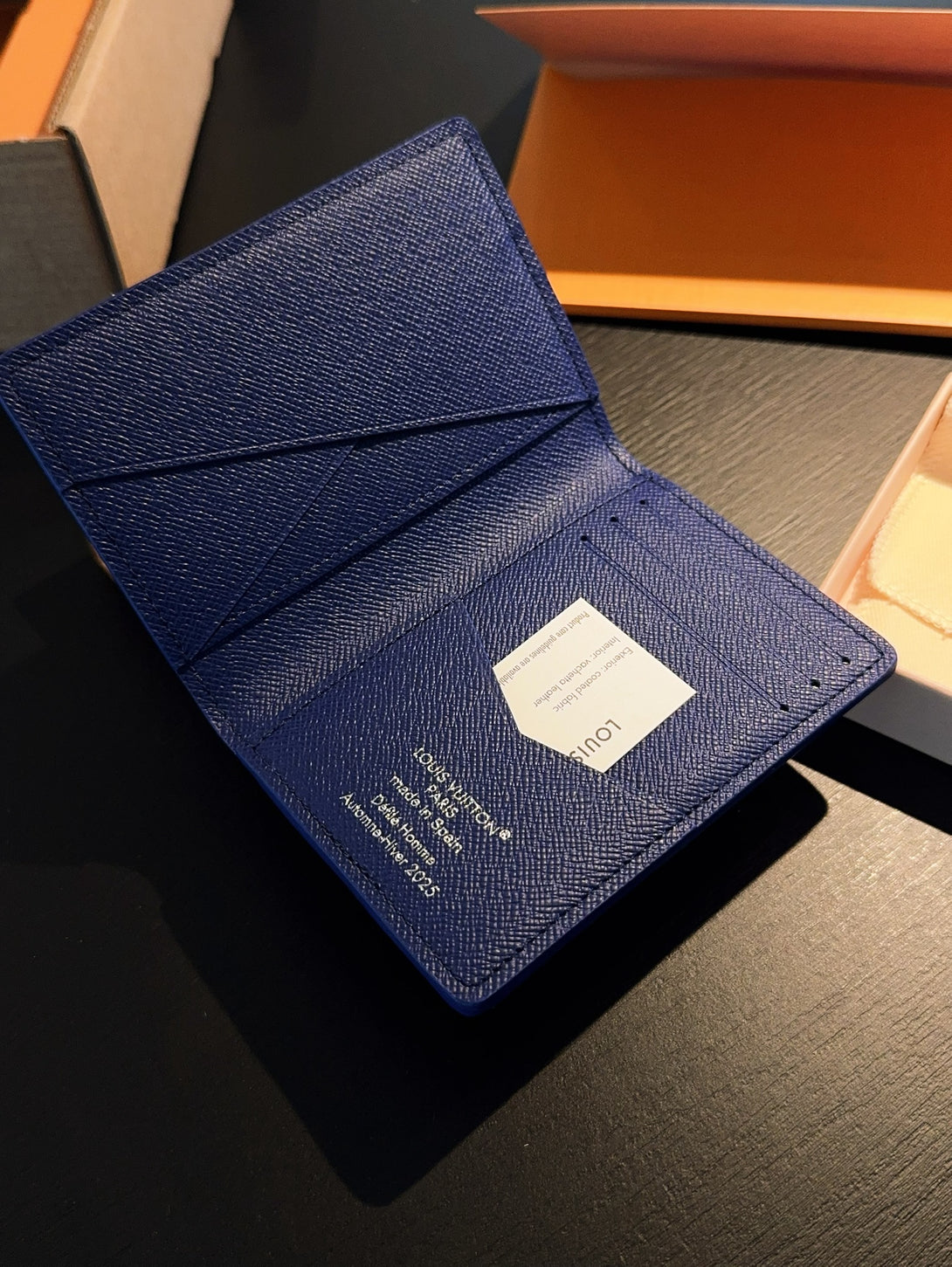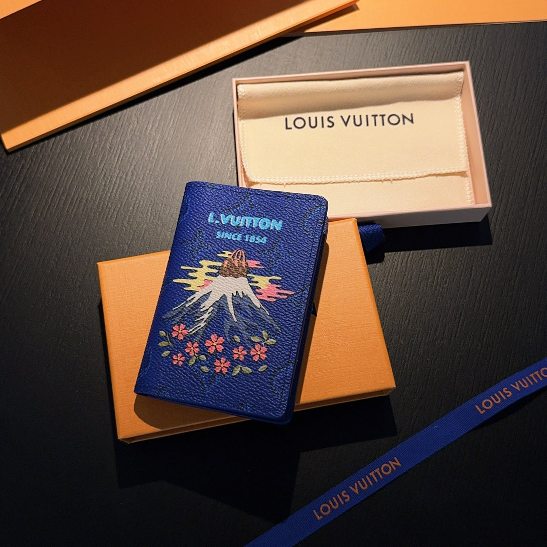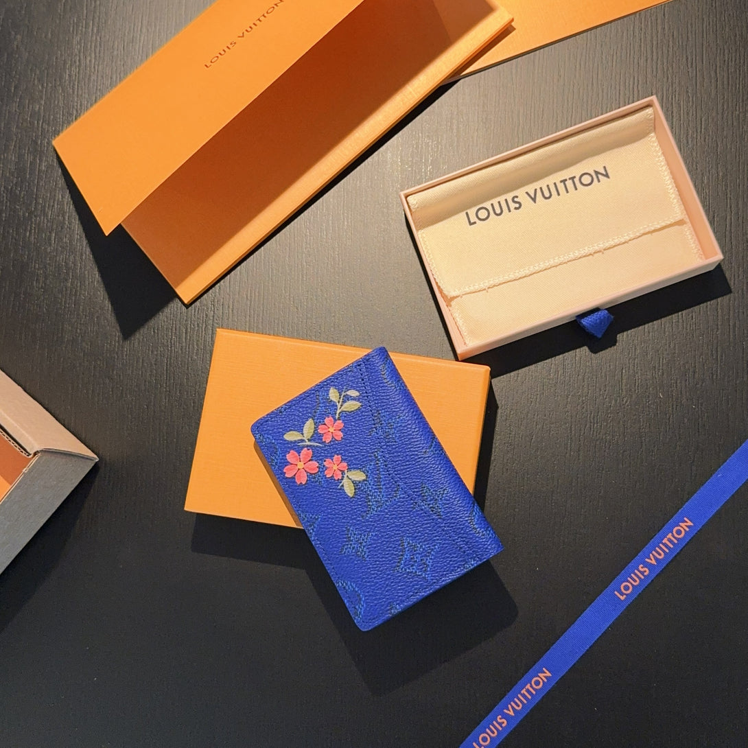 A colourful Japan-inspired motif adorns the front of this Pocket Organiser compact wallet in coloured Monogram canvas. Signed Louis Vuitton, the motif adds a unique touch to the classic small wallet. Lined with cowhide leather, it features three card slots, five inside pockets and a convenient outside flat pocket on the back.