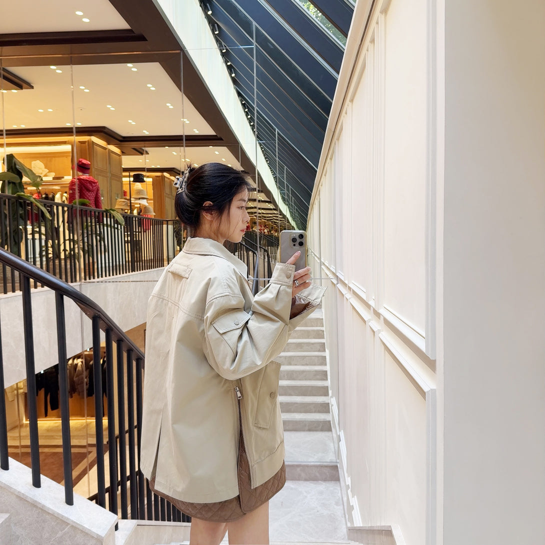 Playing with texture, the Felci shirt jacket for women pairs smooth cotton with a quilted trim.
