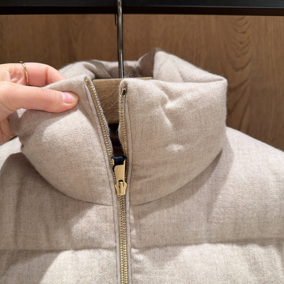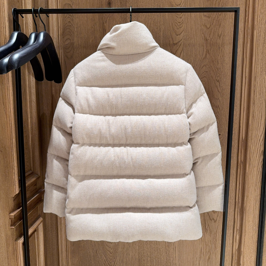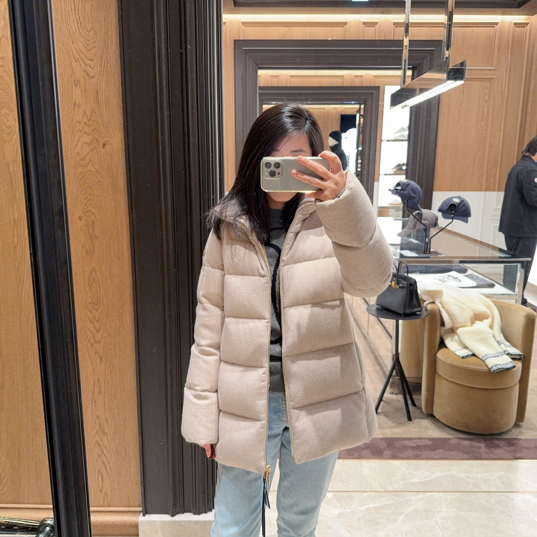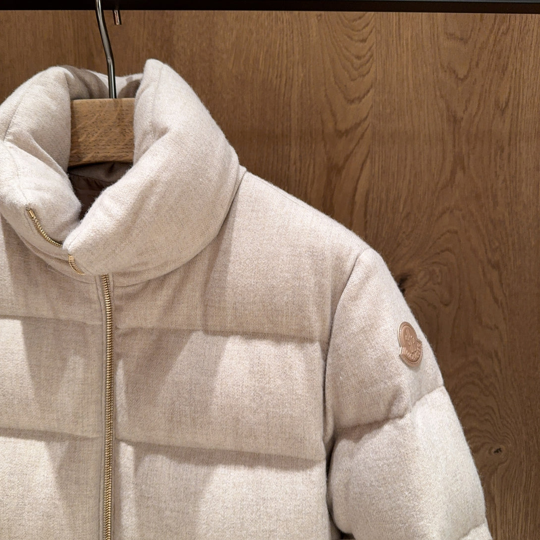 Synonymous with comfortable elegance, the Bonaguil short down jacket for women is crafted from a luxurious cashmere and wool blend.