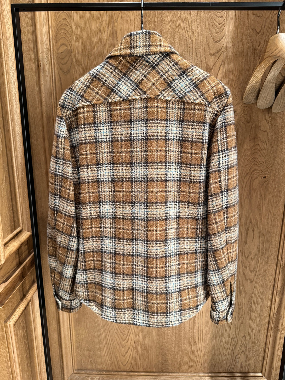 Evoking free time in the great outdoors, this shirt jacket for men is crafted from wool with a checkered pattern.
