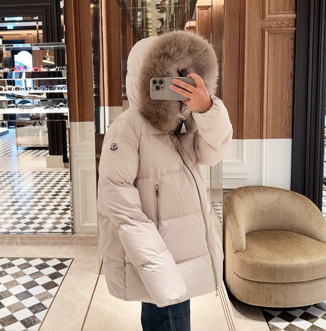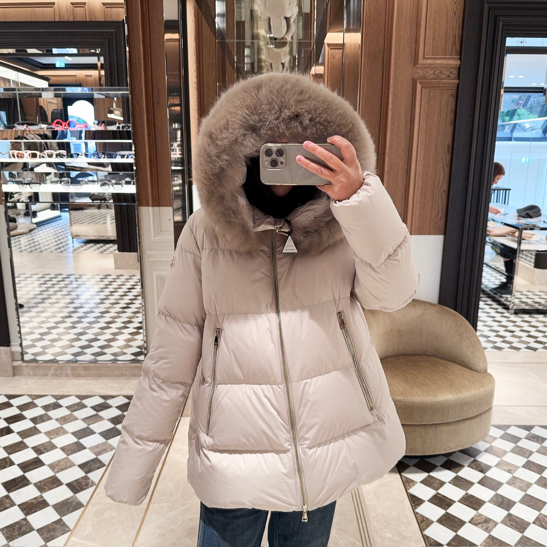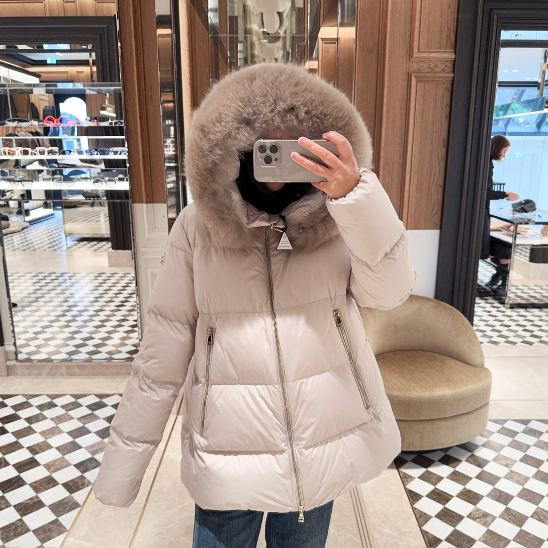 EXTERIOR: 100% Polyester; LINING: 100% Polyamide / Nylon; HOOD LINING: 100% Polyamide / Nylon; PADDING: 90% Down, 10% Feather;Leather with hair 1: GOAT; Origin: China; Dyed