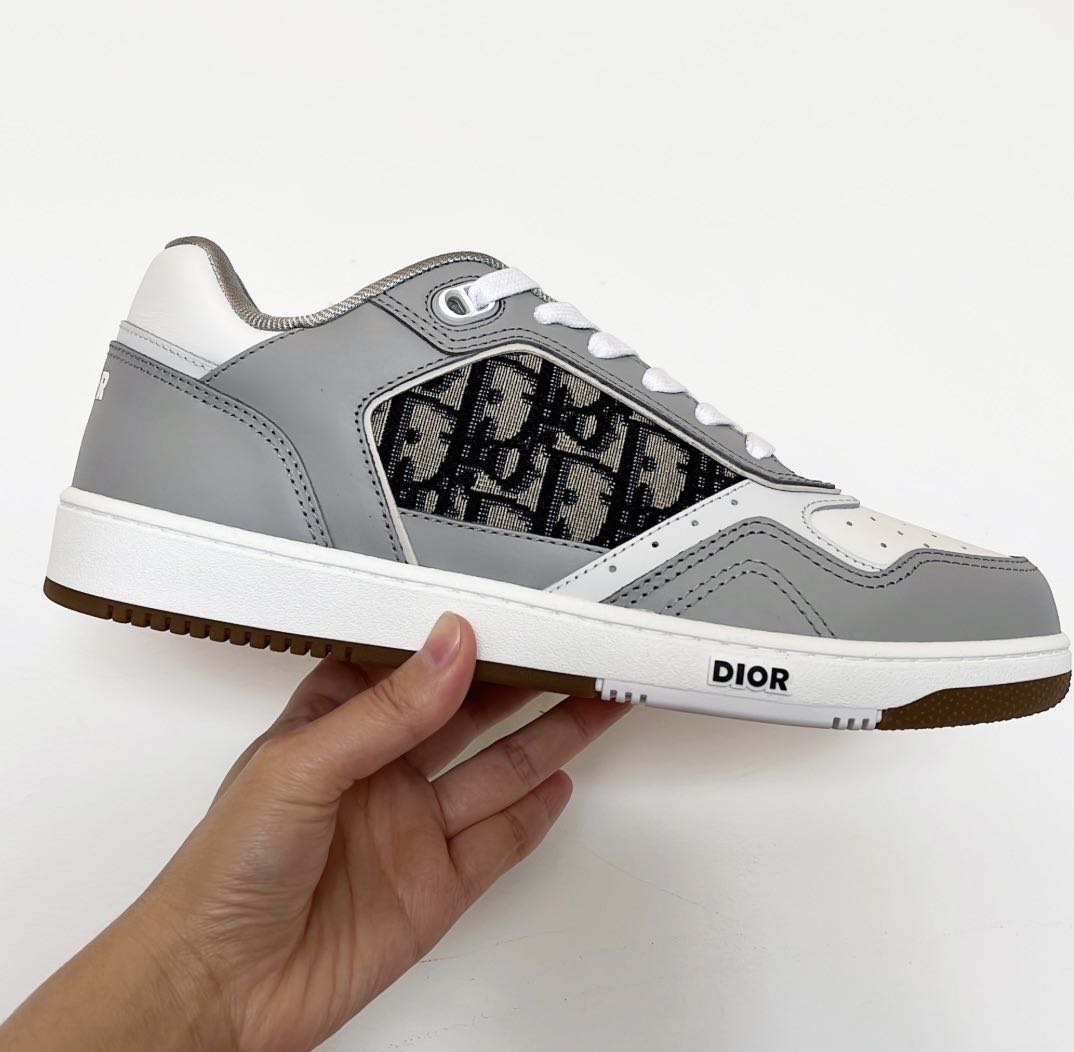 Gray and White Smooth Calfskin with Beige and Black Dior Oblique Jacquard