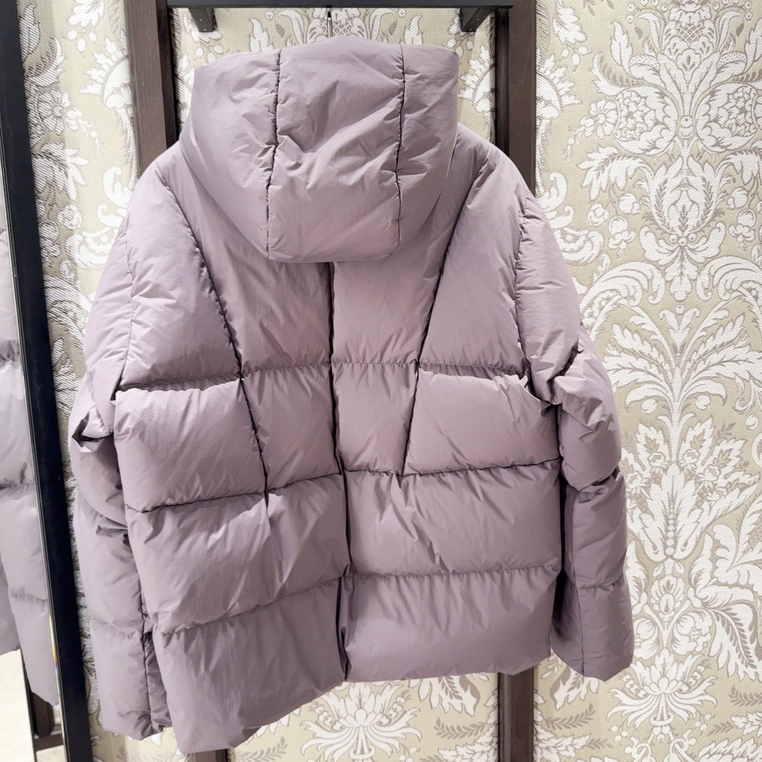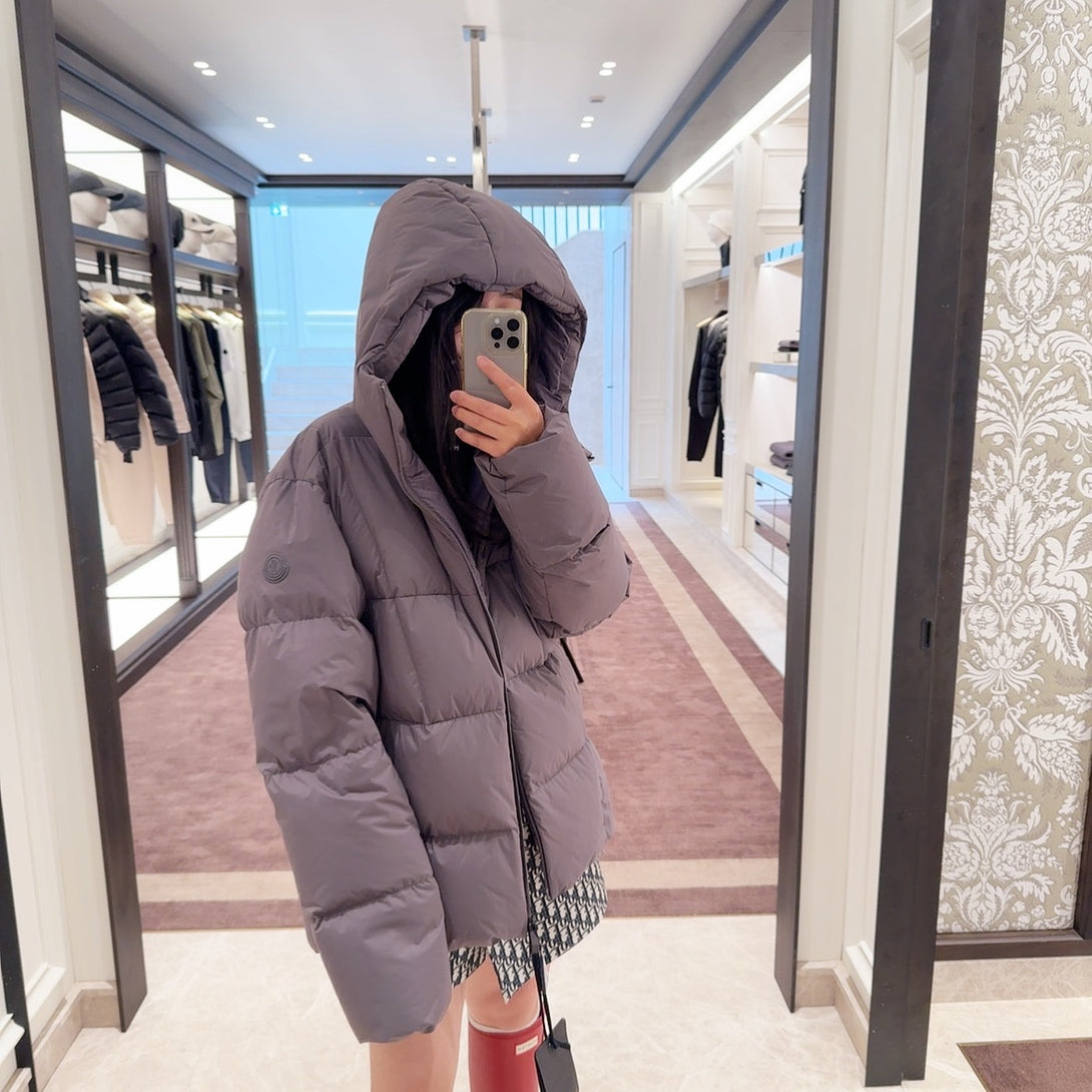 Sleek and sporty, the Fusain short down jacket draws inspiration from the bold cuts of racing motorcycle suits.